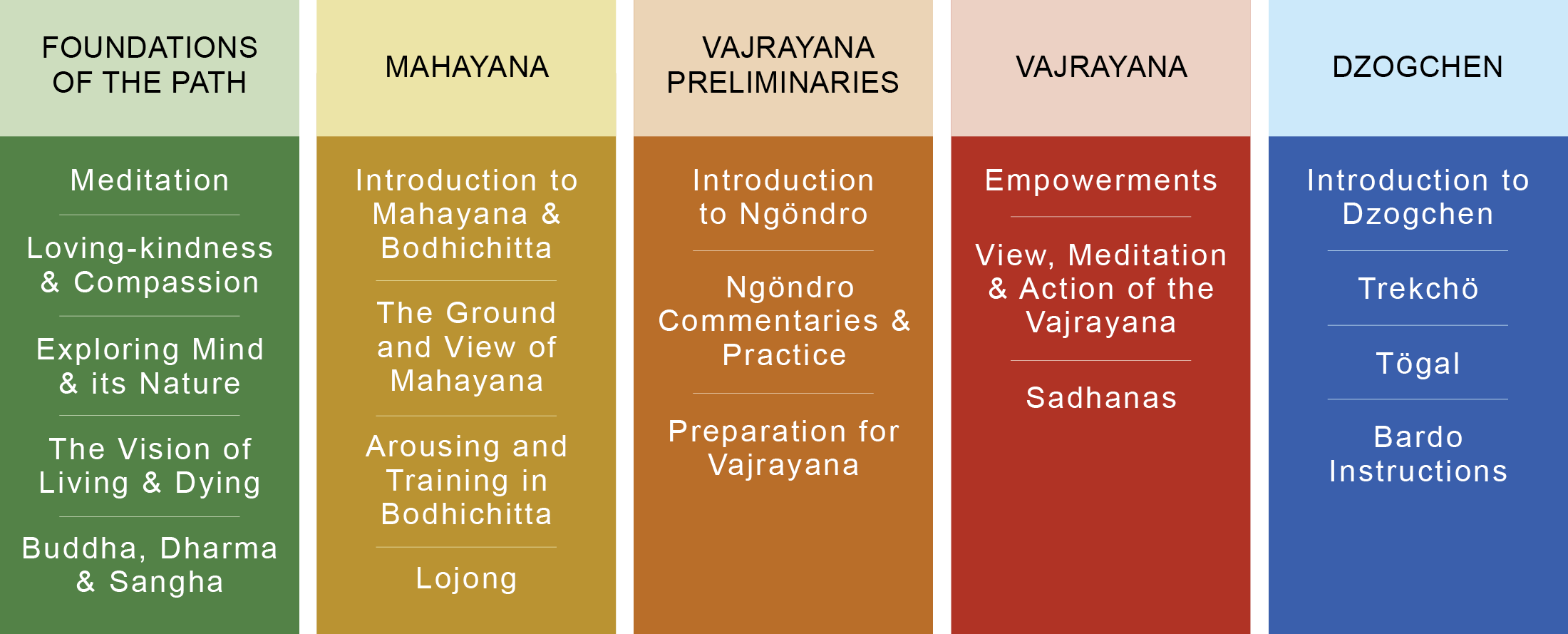 The Rigpa curriculum is broadly divided into five stages or categories:
