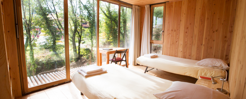 Nos chambres en forêt sont nos logements les plus proches du temple.