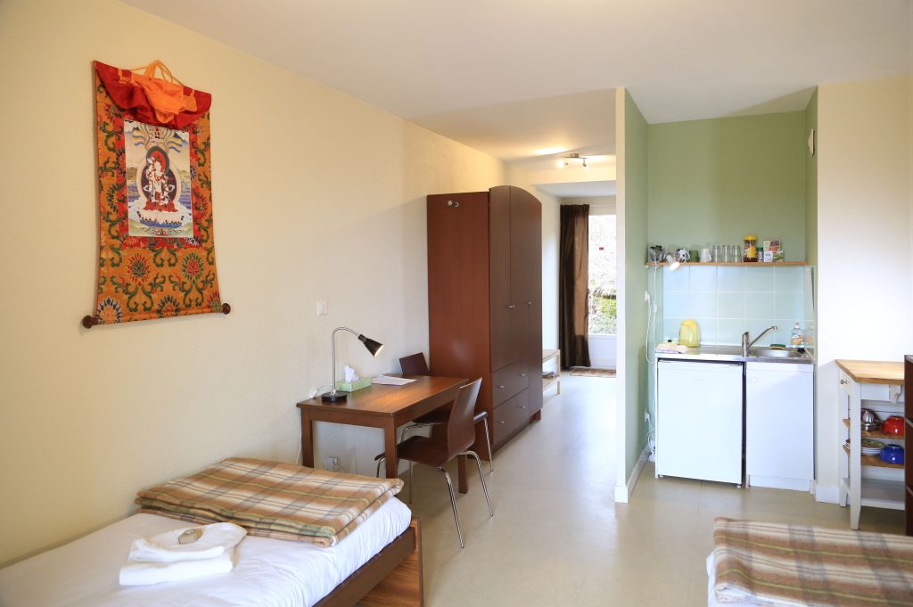 Du côté des hébergements, nous vous proposons deux types d’hébergement, proches du temple. C’est vous qui choisissez. Le linge de lit et les serviettes de bain sont fournis.